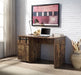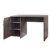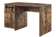 Industrial vibes and earth-toned hues give a boring workplace a complete makeover. The wooden desk is brimming with simplistic elegance, while finish makes it feel extra inviting and livable. The cabinet on the left side features a single barn door with metal hardware for an industrial-style look. The three-tier shelf behind the barn door offers ample storage spaces for all of your personal stuff.