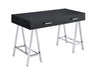 Coleen - Writing Desk With USB - Black High Gloss & Chrome