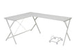 Corner Computer Desk Orientation: "L" ShapeX-Shape Metal Frame BaseRectangular Table Top w/Tempered GlassKey Board Tray IncludedComputer Holder Included