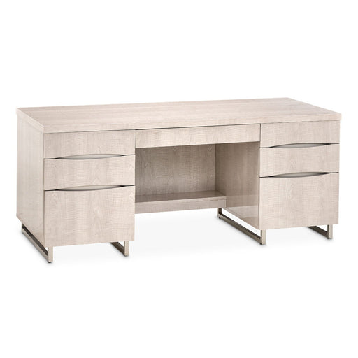 Melrose Plaza - Writing Desk With Glass Top - Dove