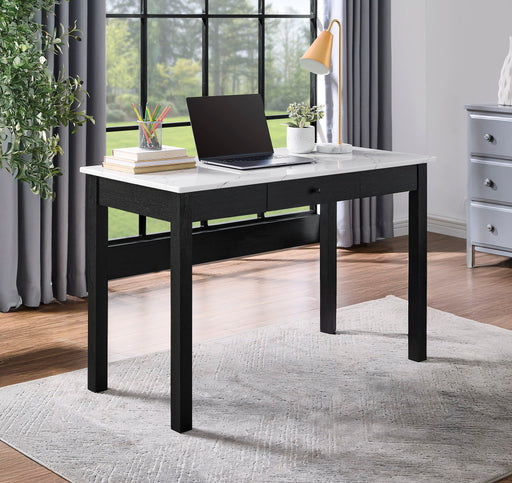 Raise the bar on modern farmhouse style with this home office desk. Its casual good looks are accentuated with a two-tone finish, which pairs a war...