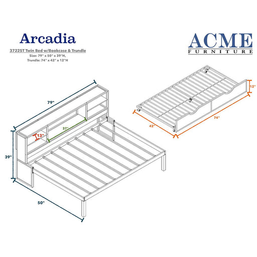 ACMEThe Renell collection features sturdy metal construction in black and silver finish. This functional bed includes a built-in bookcase, metal rollin...
