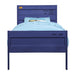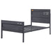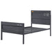 The Cargo youth bed is the perfect addition to any child’s room. This contemporary container themed metal bed features a panel headboard with low profile footboard, crafted with an industrial look that is an perfect match for your bedroom. The bed is accented with straight legs and a recessed panel design in an understated finish. This fashionable bed will accent your other bedroom furniture, transforming a room from ordinary into something playful and unique.
