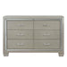 The Platinum Youth 6-Drawer Dresser is sure to delight your glamour queen! This dresser comes in a chic champagne finish with glamorous chrome handles with crystal-like accents. Youll have plenty of storage space with its six, spacious drawers; perfect for keeping all of your belongings neatly stored away. Mirror glass trim accents the dresser and adds an extra element of design to this already stunning piece. Stylish bracket feet complete the look of this modern design.