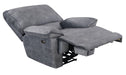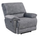 Simone offers a seat in comfort with this Power Recliner offering extra-wide seating and a plush fabric in a soft-touch grey application. The power control station on the outside arm offers a USB recharging port while the power footrest and pocket coil seating assures everyone will be comfortable for the big game.