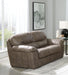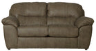 BRADSHAW is an extra-wide two-seat design featuring a decorative pub back and a faux leather fabric.