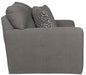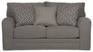 The contemporary farmhouse styling of the Cutler gliding loveseat brings comfort and style to any room. Built for comfort, the seats are constructed of individually pocketed coils encased in foam and topped with a layer of cool gel infused memory foam for a long lasting, comfortable and supportive seat. The unique, gentle gliding motion is very relaxing. Covered in a soft, durable 100% polyester body fabric in a light gray color and accented with coordinating designer toss pillows, the Cutler brings style to any room. The look is completed with pewter finished nailhead accents along the base.