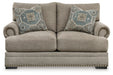 Looking to enhance your home's visual appeal? This loveseat offers sophisticated design, comfort and elegance with tonal colors, roll arms and nailhead accents. Enjoy optimal coziness as you nestle into luxurious soft upholstery and feather-blend cushions. Perfect for modern spaces, it's just the spot to sit back and relax in style.