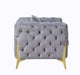 The Jelanea collection is the ideal solution to reflect your regal tastes. The classic design ensures that the pieces offer timeless appeal. The velvet upholstery brings out the glamorous side of each piece, and the metal gold legs offer a contrast to the soft velvet. Exquisite details, such as button-tufted armrests and back elevate the design. The included accent pillows further add to the comfort level of each piece. Complete your living room with these regal seating options.