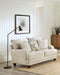 Jonesport is a Farmhouse Casual design and a piqué weave body fabric and a variety of decorative toss pillows. The modified Charles of London arm, t-front seat cushions and companion floral print Accent Chair and Cocktail Ottoman complete the look.
