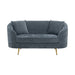 Spark memorable conversations with the sublime curved back Nakendra loveseat. Finely upholstered in soft, cobalt blue chenille and generously padded in dense foam, creating a premium seating experience for you and your guests. This tailored statement piece is perfect for the modern living room, entryway, lounge area, or bedroom. Doubling as an settee for your extra seating needs in your home or apartment, sublime comes positioned on four tapered and Splayed gold metal legs with non-marking foot caps.