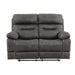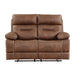 Experience the ultimate in relaxation and style with the Rudger reclining loveseat. Sink into the deep comfort of its dimpled back, overstuffed arms, and headrest, and shaped seat, all featuring no-sag springs and pocket coils for the perfect balance of support and softness. Perfect for a smaller space, an apartment or great paired with the Rudger Sofa or Recliner, this comfortable seat for two meets the need for style and plush seating. An effortless one-pull motion mechanism quickly and easily reclines to preferred position, offering the ultimate in convenience and comfort. But it’s not just comfort that sets the Rudger loveseat apart. Contrasting baseball stitching adds a touch of sophistication, while the microsuede cover exudes the rugged yet refined charm of an old bomber jacket. Experience the ultimate in relaxation and style with the Rudger sofa.