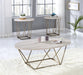 - Styling details include hexagonal web-style metal base, faux white marble top, and round shaped End Table Top