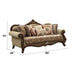 Welcome the essence of lavish living into your home with the Mehadi sofa. Shapely front posts with detailed carving, follow the elegant curve of the rolled arms that make a transition to the wood trimmed arched padded backrest which is silhouetted by a camel hump wood frame with a top center detailed carving. The base of the front posts marries to a complimentary front apron with a center carved detail. Sit in comfort on the pocket coil seating and 8 throw pillows knowing you have the roots of great sofa design.