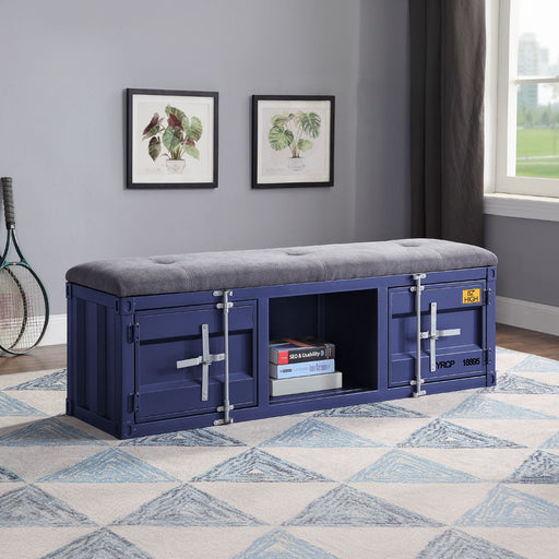 ACMERebekah - Bench With Storage - Gray FabricProduct Features KD Leg, Rectangular Armless Storage Bench (Backless) FuLy Padded: Velvet Fabri Button Tu...