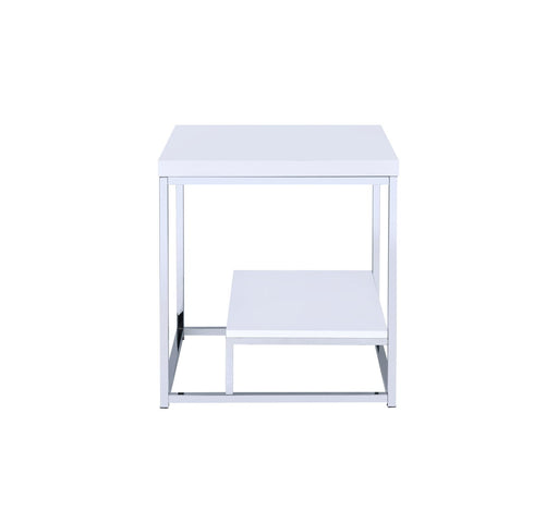 Steve Silver FurnitureMidcentury modern design meets glam styling in the Zena End Table. Canted chrome legs frame the white finished wood center in a neutral but not bor...