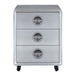If you're looking for a place to store your office supplies, look no further. This Brancaster cabinet is made with an aluminum frame and three drawers, which will be ideal to create a neat and tidy office space. It has wheels so that it can be easily moved around your office. The piece has decorative rivets throughout its construction for an industrial look.