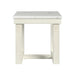 Bring a touch of serene elegance to your home with the exquisite Catilin End Table. Its brushed white finish exudes gentle charm, while the faux marble top provides a sophisticated contrast, emulating the timeless beauty of natural stone. Designed for posh gatherings or quiet moments with a book and a cup of tea, this table is both functional and stylish. Its clean lines and open base make it a perfect statement piece, effortlessly blending into your décor while adding a hint of refined luxury. Let the Catilin End Table become the heart of your home's style and warmth.