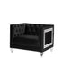 Looking to create a glamorous living room, look no further. The Heibero collection is ideal for that. Featuring timeless button tufting and the more modernized fine details such as the mirrored trim accents. The velvet upholstery is an eye-catcher. Have the best of both worlds contemporary and classic all in one with this collection. Solidly constructed, this sofa rests securely on four acrylic legs. This collection is a perfect solution for providing seating for you and all your guests.