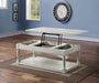 Cottage styling in a Lift-Top Cocktail Table that lets you work or eat while seated on your Sofa. The Hemingway Cocktail features classic cottage design like turned legs, plank top and an alabaster finish. The plinth base offers a sturdy foundation to anchor the Lift-Top convenience of the table. A bottom shelf offers additional storage or display options while two storage pockets underneath the lift-top offer convenient storage for remotes or other items.