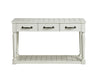 Cottage styling in a Sofa Table that fits in any casual environment. The Hemingway Sofa Table features plank top and plank base with turned legs and alabaster finish for hust the right farmhouse feel for today's casual environments. The ebony metal hardware offers just the right neutral contrast to pair well with casual upholstery settings. The working drawers offer a place for convenient storage. Pair the Sofa Table with the other tables in the Hemingway collection or use alone as a Hallway Console, at the back of a Sofa or as an Entertainment Unit.