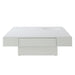 This Khaim square coffee table, with its pristine white high gloss finish, exudes modern sophistication. Its fixed table top and sleek design make it a striking centerpiece in any living room. The high gloss finish not only enhances its contemporary appeal but also adds a touch of elegance. Perfect for displaying decor, also elevating your living space with its chic presence.