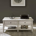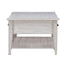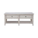 Enjoy family game night around the Lake House cocktail table. Crafted of poplar solids and oak veneers, this piece features an }appealing planked tops with additional wood and peg accents, planked bottom shelf, two push-through drawers accented by antiqued brass knob hardware, anchored by a tapered leg design. The golden oak finish allows for a universal appeal.