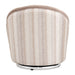 An engaging fusion of function and flair. Outfitted in seismic stripes, echoing the accent pillow’s fabric, this piece dances between elegance and playfulness. It’s not just a chair that swivels, but a vibrant, fun spin on everyday luxury. Give your living room a delightful shake-up!