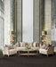 Make a statement in every room. The Malibu Crest Glass Cocktail Table features elegant leaf point edges and soft curves guaranteed to catch attention. Completed with a Chardonnay finished frame and a beveled glass top, this table is the picture of luxury.