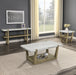 Transform your living room with the Marble Top Table Collection. Crafted with modern flair from veneers, hardwood solids, and exquisite marble tops, each piece exudes sophistication. The base from solid wood adds a touch of lightness, while the sturdy legs and clean lines introduce a primitive charm. Functionality is paramount, with built-in shelves on all pieces for convenient storage, perfect for keeping remotes close at hand.