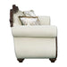 Pierce collection sofa set brings timeless elegance to your living space with its beige fabric and cherry finish. The set includes tight back and loose seat cushions with pocket coil construction for ultimate comfort. A wooden inner frame ensures durability, while button tufting and floral trim apron and legs add a touch of sophistication. Complete with accent pillows and a matching wooden tabletop, this set perfectly blends classic charm with modern comfort.