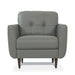 Assembled, Loose Back & Tight Seat Cushion (1+1), Button Tufted •• CONSTRUCTION •• SEAT: Webbing; Inside Frame: Wood, Contrast Tone Stitching, Box Cushion • BACKREST: Button Tufted Cushion • ARMREST: Flared Style, Arm Size: 5 Inches • Wooden Tapered LEG: Dark Walnut Finish; Leg Size: 6 Inches ••• Material: Leather (Solid Pattern) • Pillow NOT Included