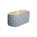The Saree coffee table uses simple rounded lines to create a striking oval shape. The coffee table delivers a unique aura into any living space with its light teal chenille and natural wooden finish tabletop. The frame is designed using a unique knitting process that adds texture and depth; this makes the pieces bold and lively in appearance. This coffee table is the perfect finishing touch to any living space.