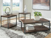 | Details | Includes coffee table and 2 end tables, Made with MDF substrate, decorative paper laminate and metal, Replicated natural-looking walnut wood grain, Frame with gunmetal gray powder coat finish, Lower open shelf, Coffee table with casters for mobility, Assembly required | |