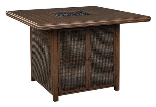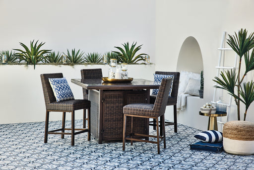 Easy-breezy beauty, made to withstand the elements. This outdoor bar table with fire pit makes a serene statement with its soothing shade of blue a...