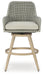 This swivel bar stool invites your casual contemporary style outdoors. With its resin wicker in a chic neutral hue, it expertly marries refined design with durability. The 360-degree swivel makes it easy to switch from watching the kids at the pool to grabbing a drink from the table. And breezy summer mornings and cold winter nights are made all the more comfortable with high-performance Nuvella+™ fabric covering the seat cushion.