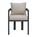 Dine in comfort with the sleek simplicity of the Playa Dining Chair. Built with durability in mind, this piece features quality materials optimal for outdoor use, like aluminum framing and weather-resistant olefin upholstery. Detachable cushions with memory foam ease maintenance while simultaneously forming clean lines with their streamlined knife-edges. Angular open armrests create a refined, modern look and enhance moments of repose for your guests. For a modern and refined update to your outdoor area, the Playa Dining Chair delivers in both durability and style.