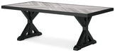 Sporting an easy-on-the-eyes elegance, this dining table elevates the art of alfresco living. Beautiful and durable enough for indoor and outdoor use, this high-style/low-maintenance table charms with X-leg farmhouse styling. With a unique reverse diamond tile pattern, the thick porcelain tabletop provides unparalleled sophistication.
