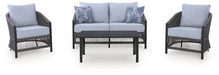 Ready to bring indoor style to your outdoor space? This beautiful 4-piece table and chair set is the perfect choice for creating a cozy patio retreat. A unique rope design lends the loveseat and lounge chairs a light and airy feel, while plush cushions wrapped in cleanable, UV-resistant fabric provide deep-seated comfort. And the table is just the spot to rest cocktails and coffee cups while you enjoy warm days and cool evenings with friends and family.