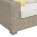 The Ollie Sofa patio furniture piece just made your backyard experience a little more inviting. Crafted with a powder coated frame, this outdoor sofa promises countless years of cherished memories with its unique half round weave design. You'll find upholstered cushions and pillows for you to kick back, relax, and gather around for some fresh air. Track arms and straight lines throughout make this Ollie Sofa a transitional piece that will seamlessly blend in with the great outdoors.