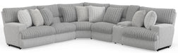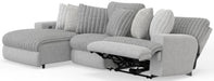 Abraxas is a Modular Reclining Sectional with a contemporary track arm design. A luxurious faux fur fabric and a variety of correlating toss pillows provide added style and seating comfort.