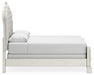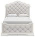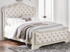 | Details | Includes headboard, footboard and rails, Made with hardwood solids, spruce veneer, MDF substrates and cast resin components , Antiqued white painted finish, Polyester upholstery, Button tufting, Foundation/box spring required, sold separately, Mattress available, sold separately, Assembly required | |