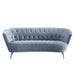 The Bayram living room collection is a perfect combination of contemporary and classic. With a modern curved silhouette and classic details such as diamond button tufting to create this glamourous set. The light gray velvet upholstery paired with the metal gold legs makes this collection stand out. The full foam seats provide hours of comfort, perfect for hosting game nights.