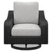 Sporting an easy-on-the-eyes elegance, this swivel lounge chair elevates the art of alfresco living. Beautiful and durable enough for indoor and outdoor use, this high-style/low-maintenance chair entices with plush, removable cushions wrapped in Nuvella® fabric that’s a breeze to keep clean.