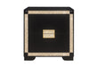 The Blake collection combines style and elegance with many beautiful features. The collection is outlined with gold colored crushed crystal to highlight its unique design. The Bed has a tall headboard and two lights along with quilted padding. The lights add style, design and function which can be used as reading lights. The quilted padding complements the design and adds comfort. All the other pieces have the black finish and crushed gold crystal outline complemented by the black and gold hardware.