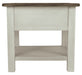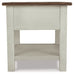 Whether your style is farmhouse fresh, shabby chic or country cottage, you’ll find this end table dressed to impress. Its two-tone, gently distressed finish pairs weathered oak with antique white for that much more quaint character. Charming elements include a plank-and-frame style top, black faceted hardware and a smooth-gliding drawer for remote controls and more.