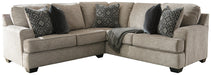 | Details | Includes 2 pieces: right-arm facing sofa with corner wedge and left-arm facing loveseat, "Left-arm" and "right-arm" describe the position of the arm when you face the piece, Corner-blocked frame, Attached back and loose seat cushions, High-quality foam cushions wrapped in poly fiber, Includes 5 accent pillows, Pillows with soft polyfill, Textured polyester chenille upholstery, Polyester; polyester/polypropylene pillows, Exposed feet with faux wood finish, Platform foundation system resists sagging 3x better than spring system after 20,000 testing cycles by providing more even support, Smooth platform foundation maintains tight, wrinkle-free look without dips or sags that can occur over time with sinuous spring foundations | |