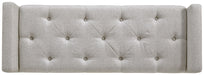 | Details | Made of polyester and wood, Polyester fabric upholstery, Tufted seat cushion, Wood legs in light brown finish, Hinged seat with storage, Assembly required | |