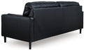 This sofa embodies timeless mid-century elegance with its linear design, sleek track arms and tapered legs. Genuine leather in the seating area adds a luxurious touch to the overall look. Experience endless style opportunities for today's living spaces.