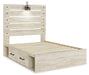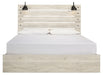 Details Includes headboard, footboard, side storage, rail and slats, Made of engineered wood (MDF/particleboard) and decorative laminate, Wispy white finish over replicated oak grain with authentic touch, Large-scale hardware with dark finish, 2 decorative sconce lights, LED with 3 AA batteries, 2 smooth-gliding storage drawers, 2 storage cubbies, 2 slim-profile USB charging ports, Power cord included; UL-listed, Bed does not require additional foundation/box spring; accommodates most zero clearance adjustable bases with the addition of a bunkie board, Mattress available, sold separately, Assembly required